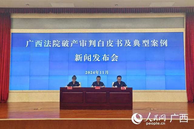 人民网南宁11月20日电 (记者朱晓玲)11月20日,广西高级人民法院举办新闻发布会,发布广西法院破产审判白皮书和破产审判典型案例。